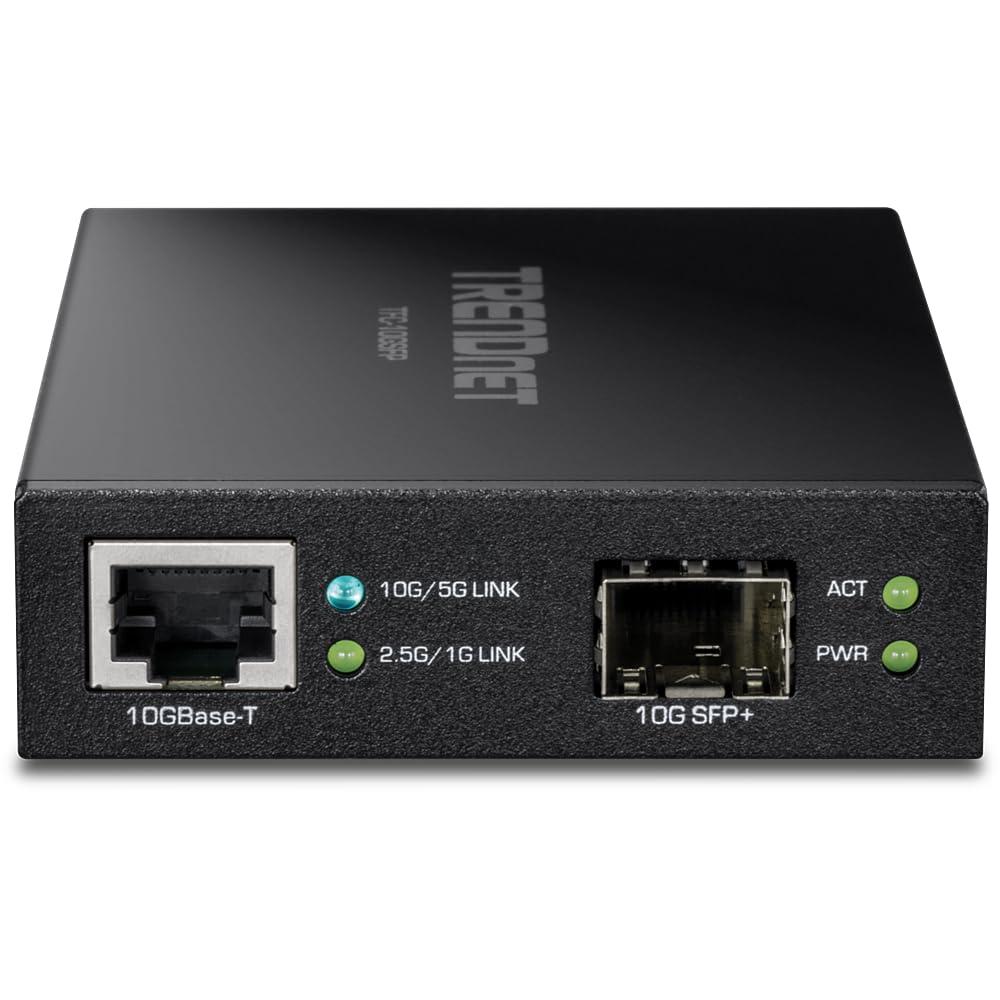 TRENDnet Convertitore multimediale in fibra da 10GBASE-T a SFP+, TFC-10GSFP, 1 porta RJ-45 da 10 G, 1 slot SFP+ da 10 Gbps, da SFP+ a RJ-45 da 10 G, adattatore di alimentazione incluso