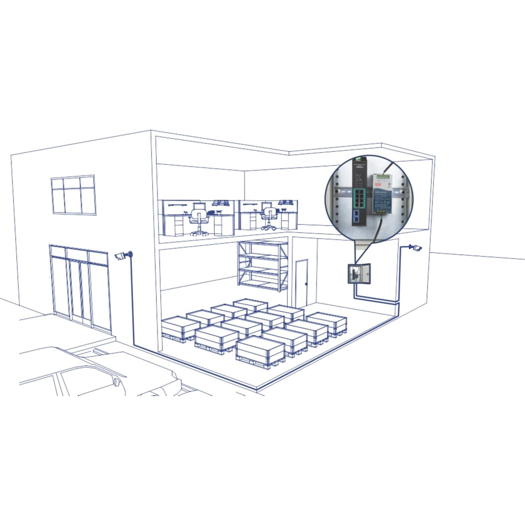 - Interfaccia dispositivo: 8 porte Gigabit PoE+; 2 slot SFP Gigabit, morsettiera rimovibile a 6 pin; montaggio su guida DIN; indicatori LED; montaggio a parete; punto di messa a terra