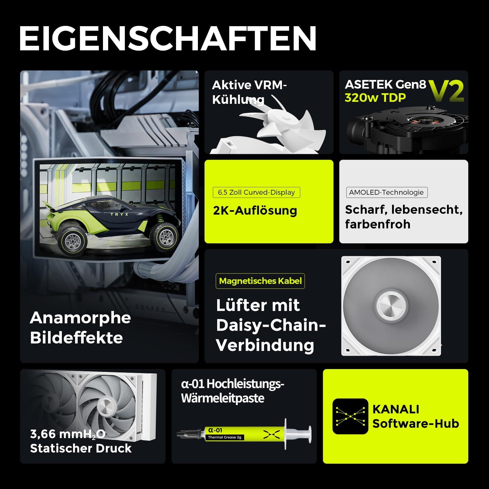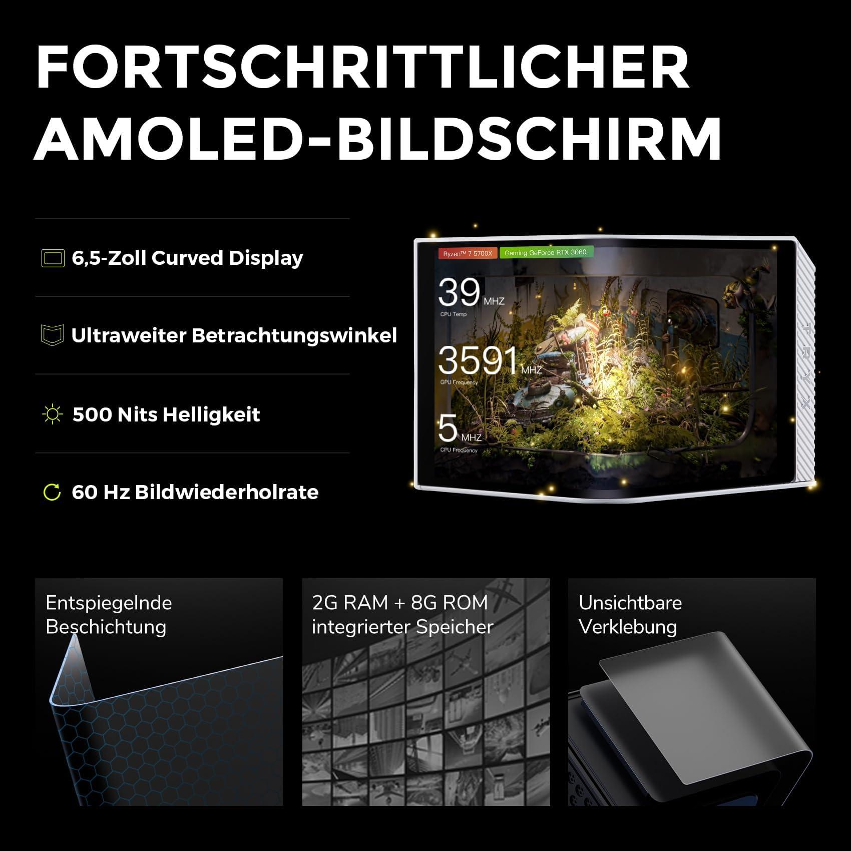 - SCHERMO CURVO DA 6,5'': Il TRYX PANORAMA 360 AIO bianco ti offre uno schermo AMOLED curvo da 6,5'' con risoluzione 2K e 60 Hz per effetti impressionanti – grazie al design a L senza punti ciechi