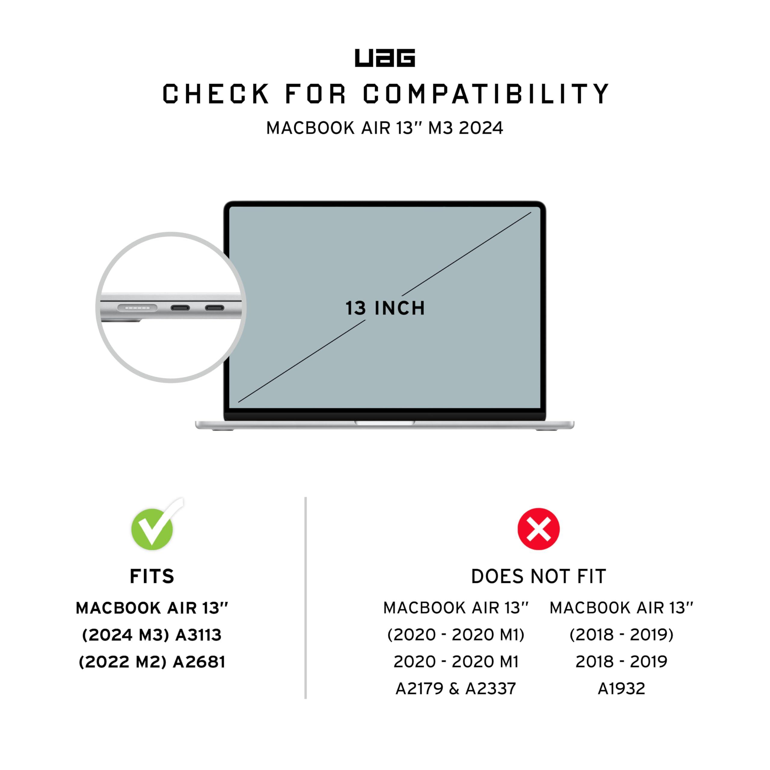 UAG - Custodia protettiva per MacBook Air 13" 2022 M2 (A2681) Plyo Ice/Nero, traslucida robusta leggera e sottile impugnatura tattile di URBAN ARMOR GEAR