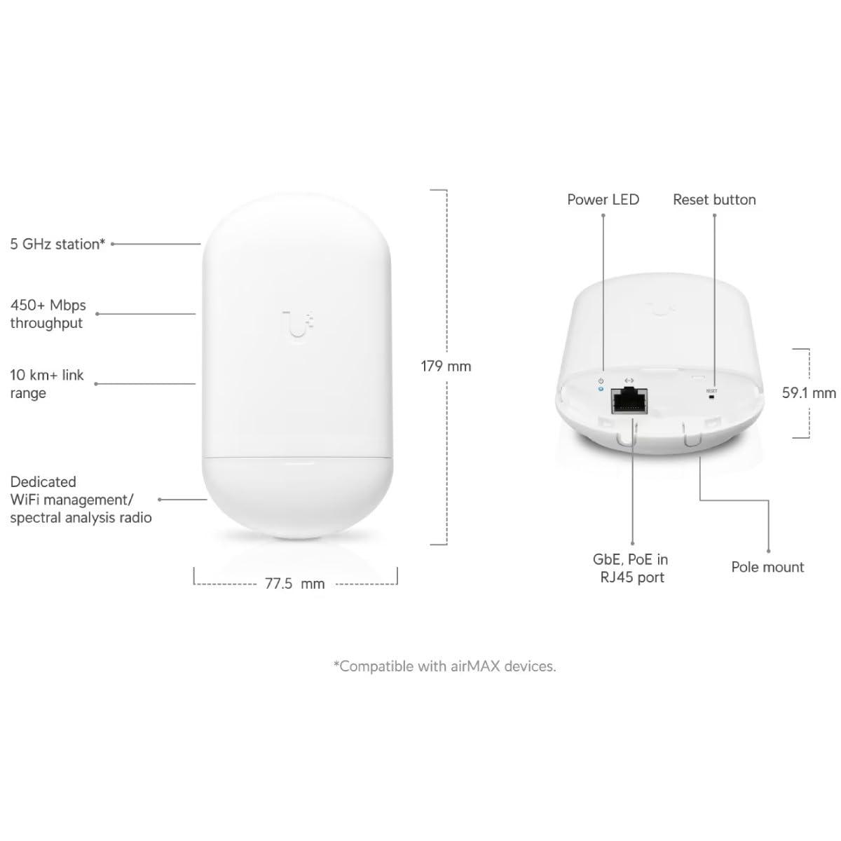 Ubiquiti NanoStation 5AC Loco 450 Mbit/s Bianco Supporto Power over Ethernet [PoE] (Ubiquiti NS-5ACL NanoStation AC Loco 5GHz 13dBi airMAX Outdoor Wireless AC CPE Bridge 5 Pack)