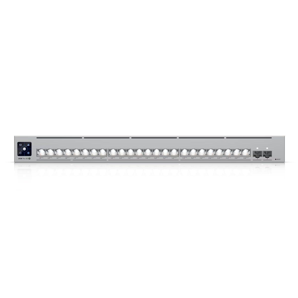 Ubiquiti UniFi Pro XG 24. Tipo di interruttore: Gestito, Livello di interruttore: L2/L3. Tipo di porte Ethernet RJ-45 di commutazione di base: Ethernet 10G (100/1000/10000), numero di porte Ethernet RJ-45 di commutazione di base: 24. Tabella indirizzi MAC: 128000 voci, capacità di routing/commutazione: 460 Gbps. Spina di alimentazione: CA/CC. Montaggio su rack, fattore di forma: 1U