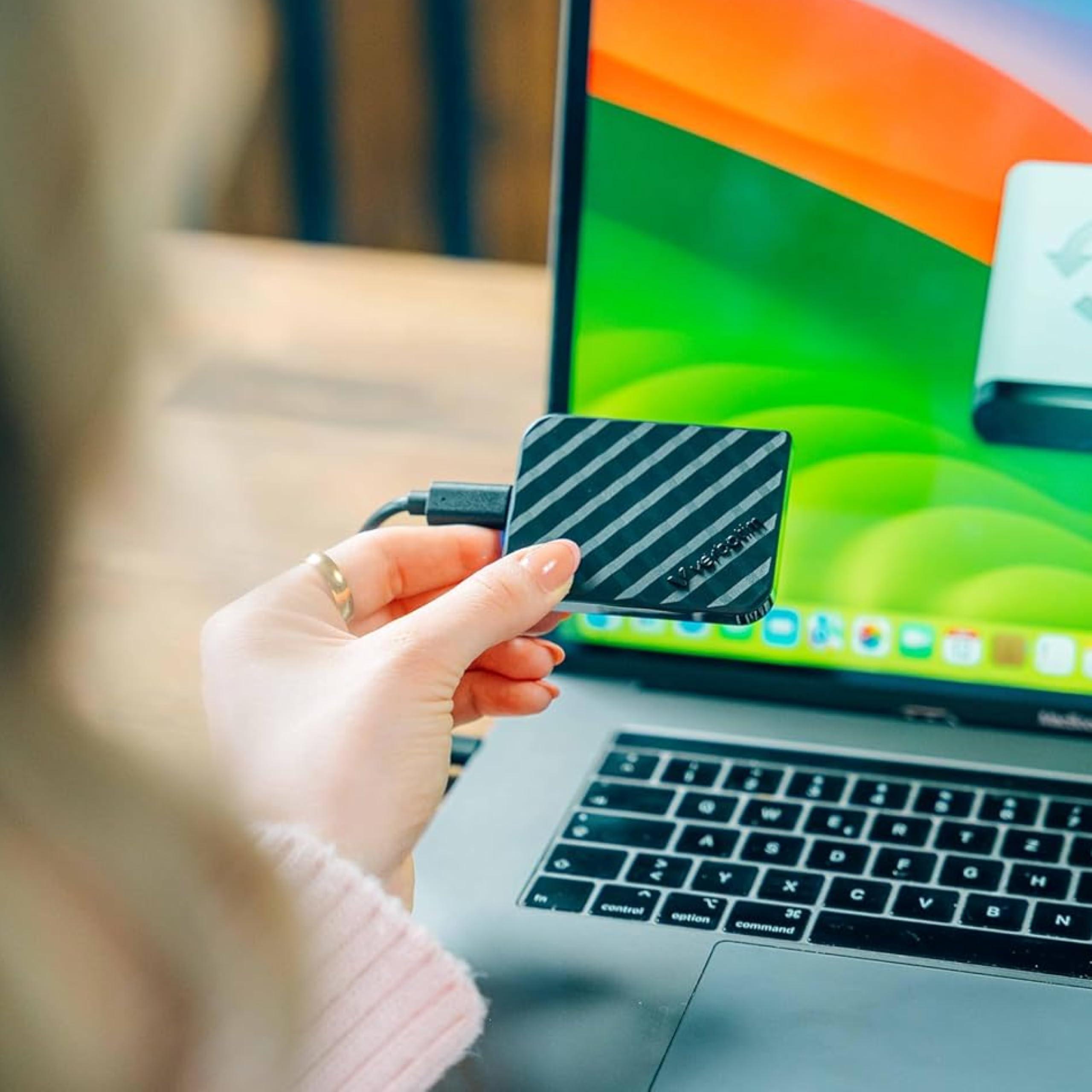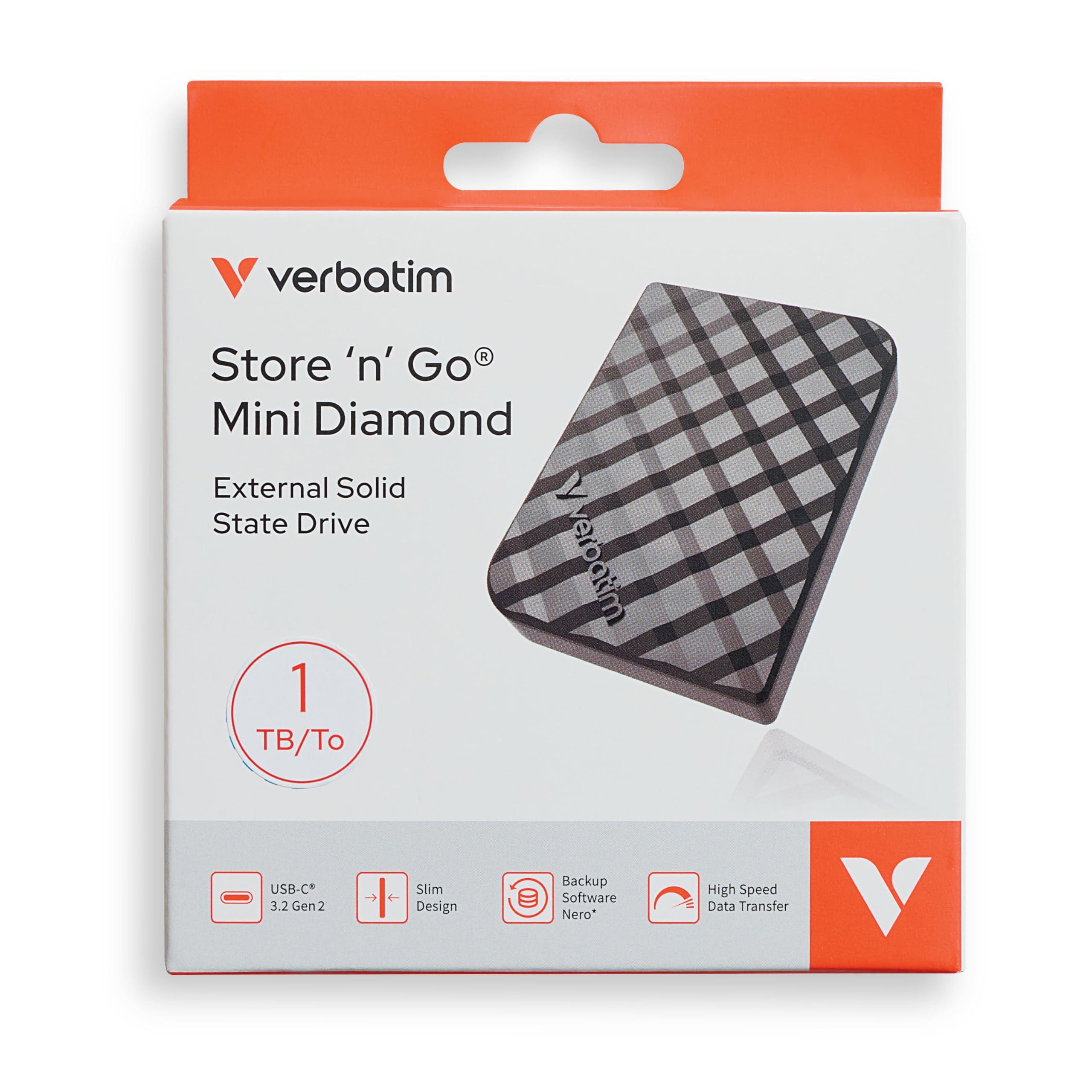 Verbatim Store 'n' Go Mini Diamond Portable SSD 1TB USB 3.2 Gen 1 con adattatore USB-C 1000MB/s, Compatto 35g, Trasferimento dati ad alta velocità, software di backup nero, per PC e Mac, Nero