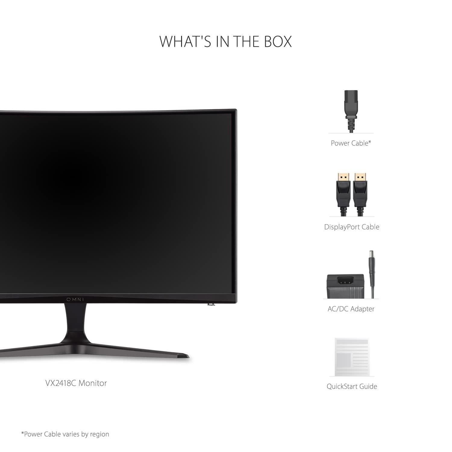 - ViewSonic Omni VX2418-C 24-inch 1080p 165Hz Curved Gaming Monitor, with 1ms Response Time, AMD FreeSync Premium, 1500R Curve, Integrated Speakers.