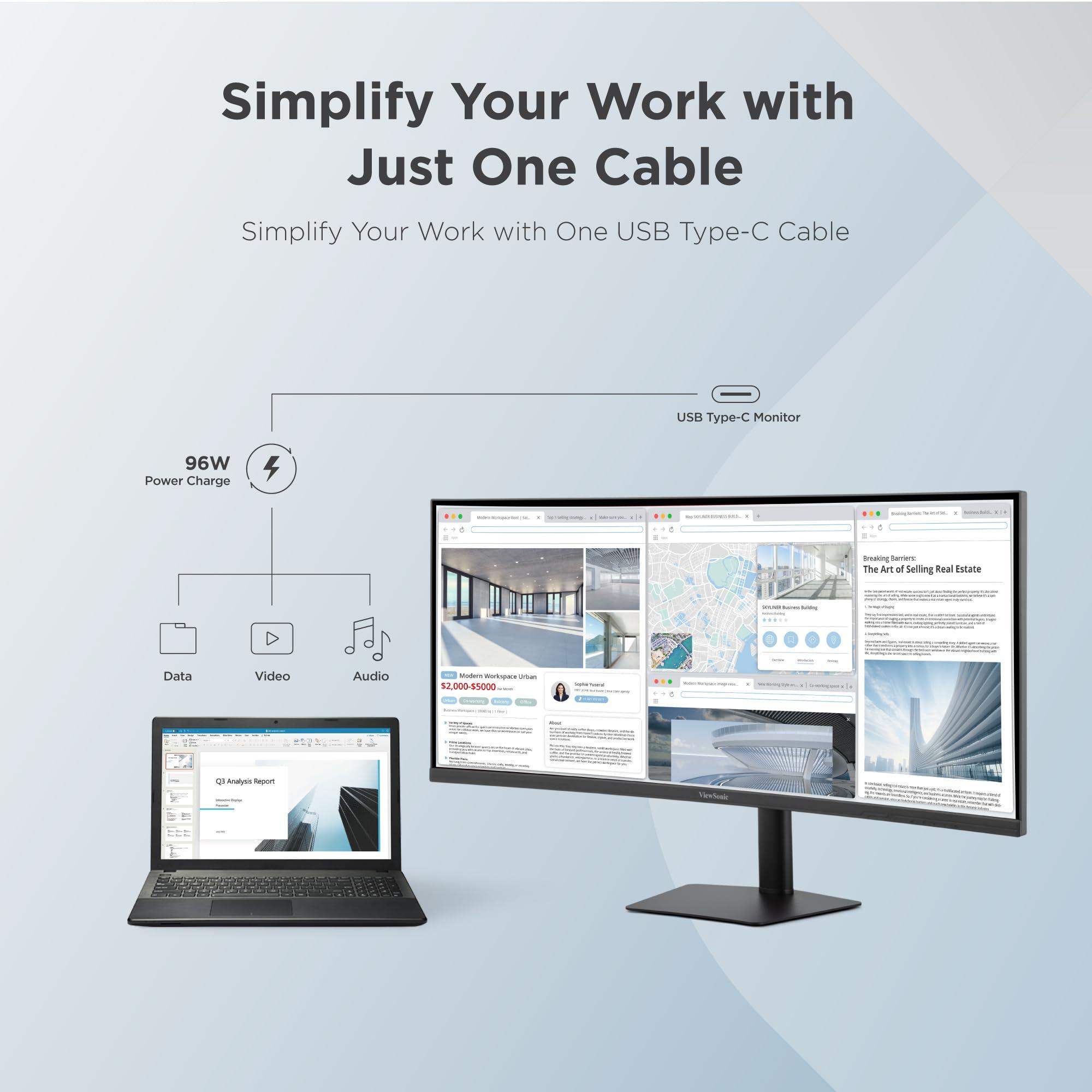 - Semplifica il tuo lavoro con un solo cavo: il VA3820C permette un flusso di lavoro più snello ed elimina la necessità di dongle e accessori plug-in. USB Type-C offre un trasferimento di potenza video, audio, dati e 96W senza soluzione di continuità.