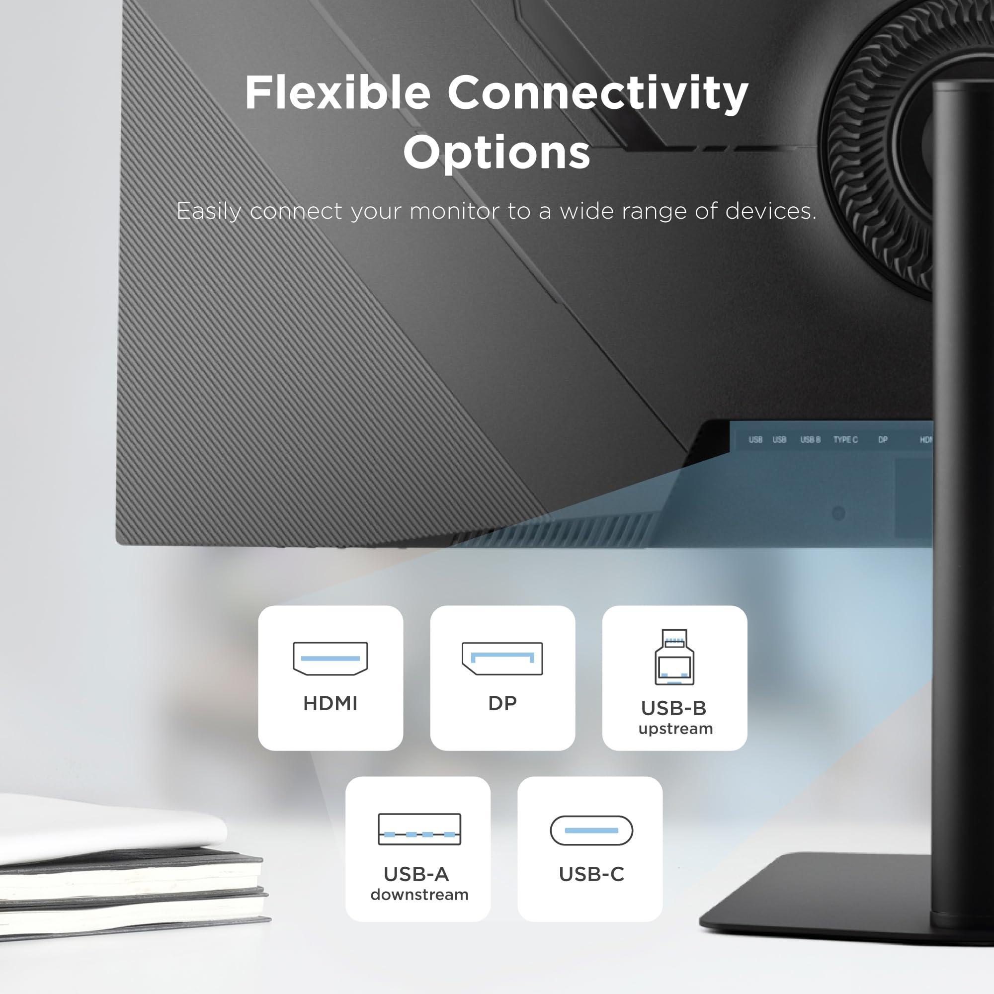 - Flessibilità di connessione: gli ingressi HDMI e DisplayPort (DP) ti danno la libertà di collegare il monitor a una vasta gamma di dispositivi. Semplifica il tuo spazio di lavoro, amplia le opzioni di connettività e semplifica il trasferimento dati con l'hub USB integrato del nostro monitor.
