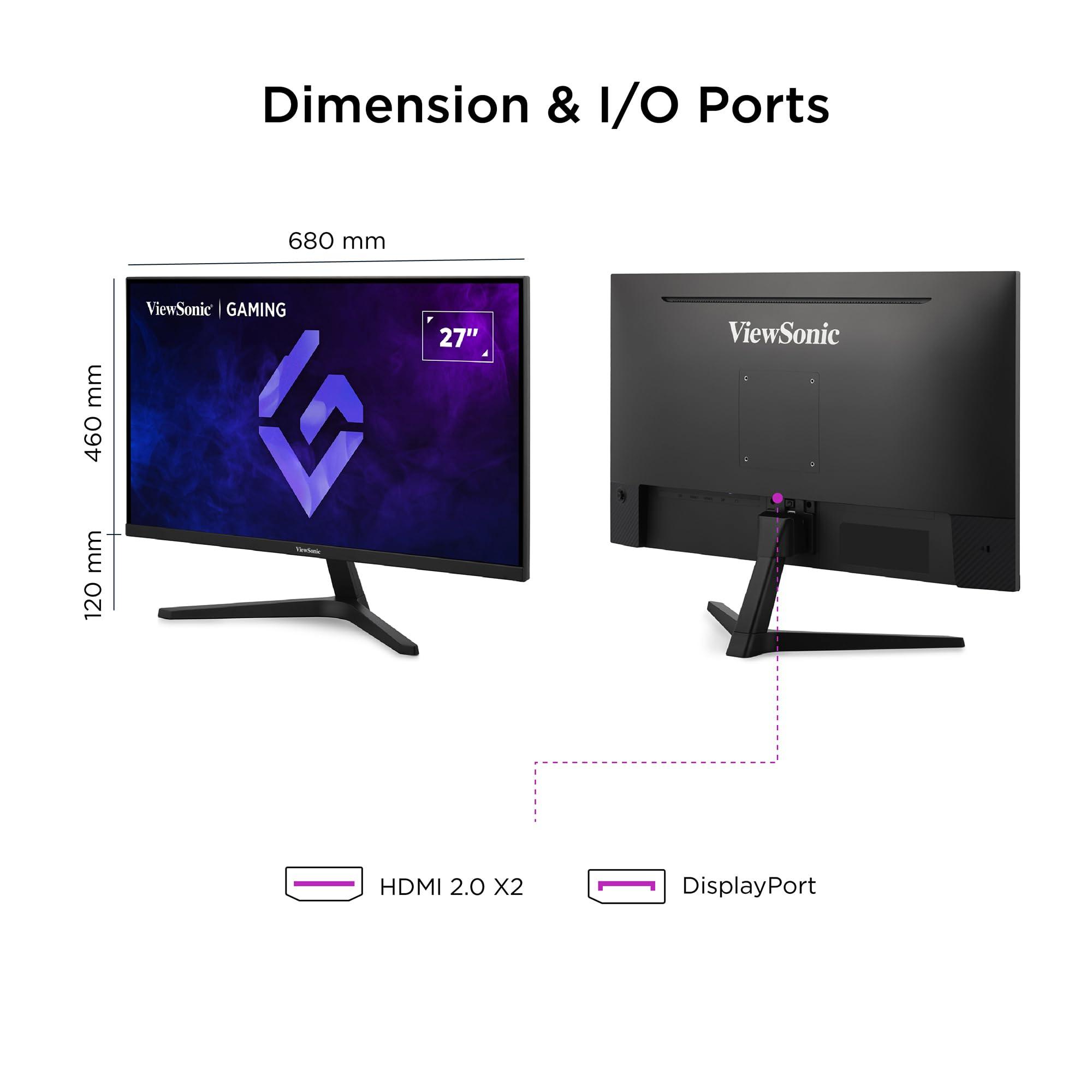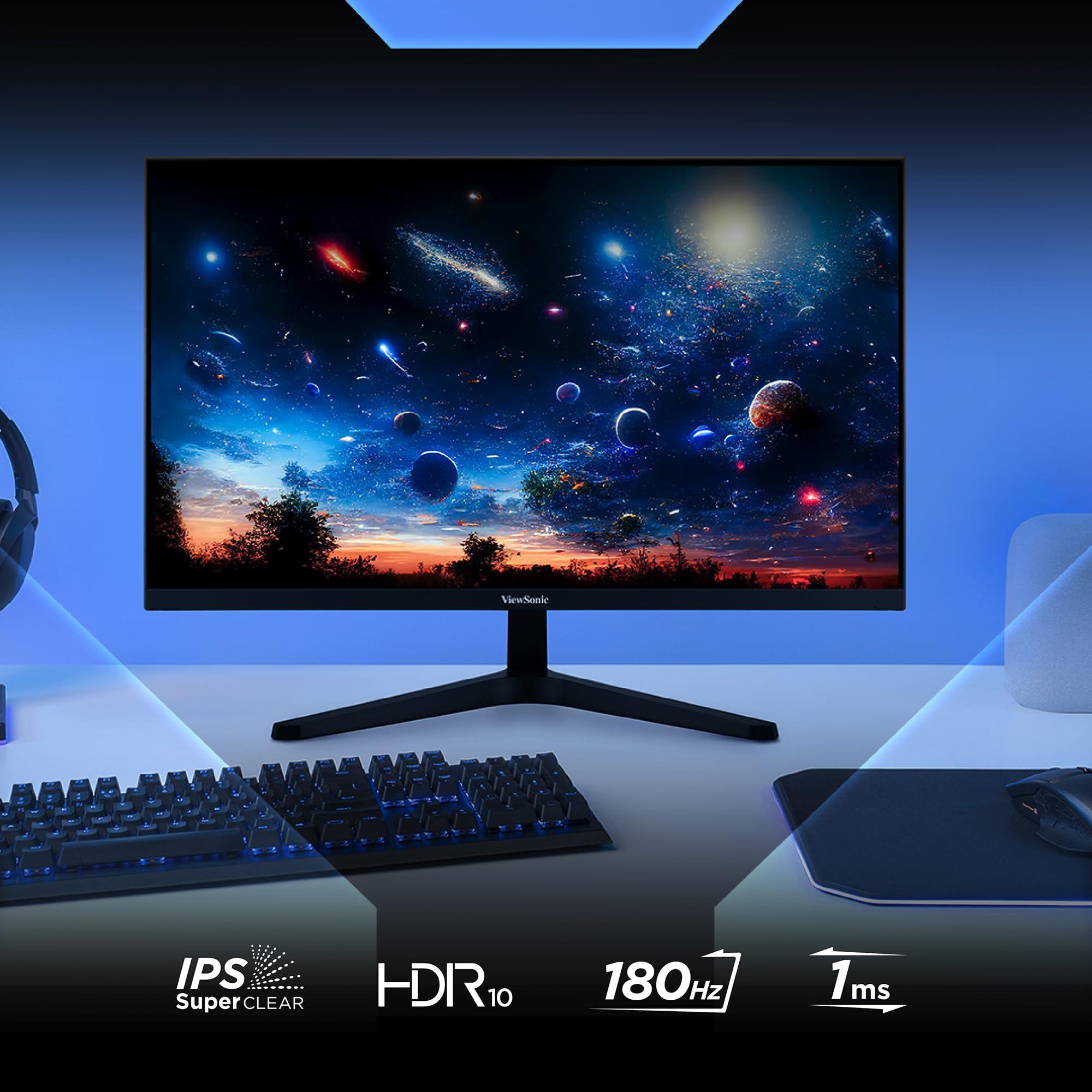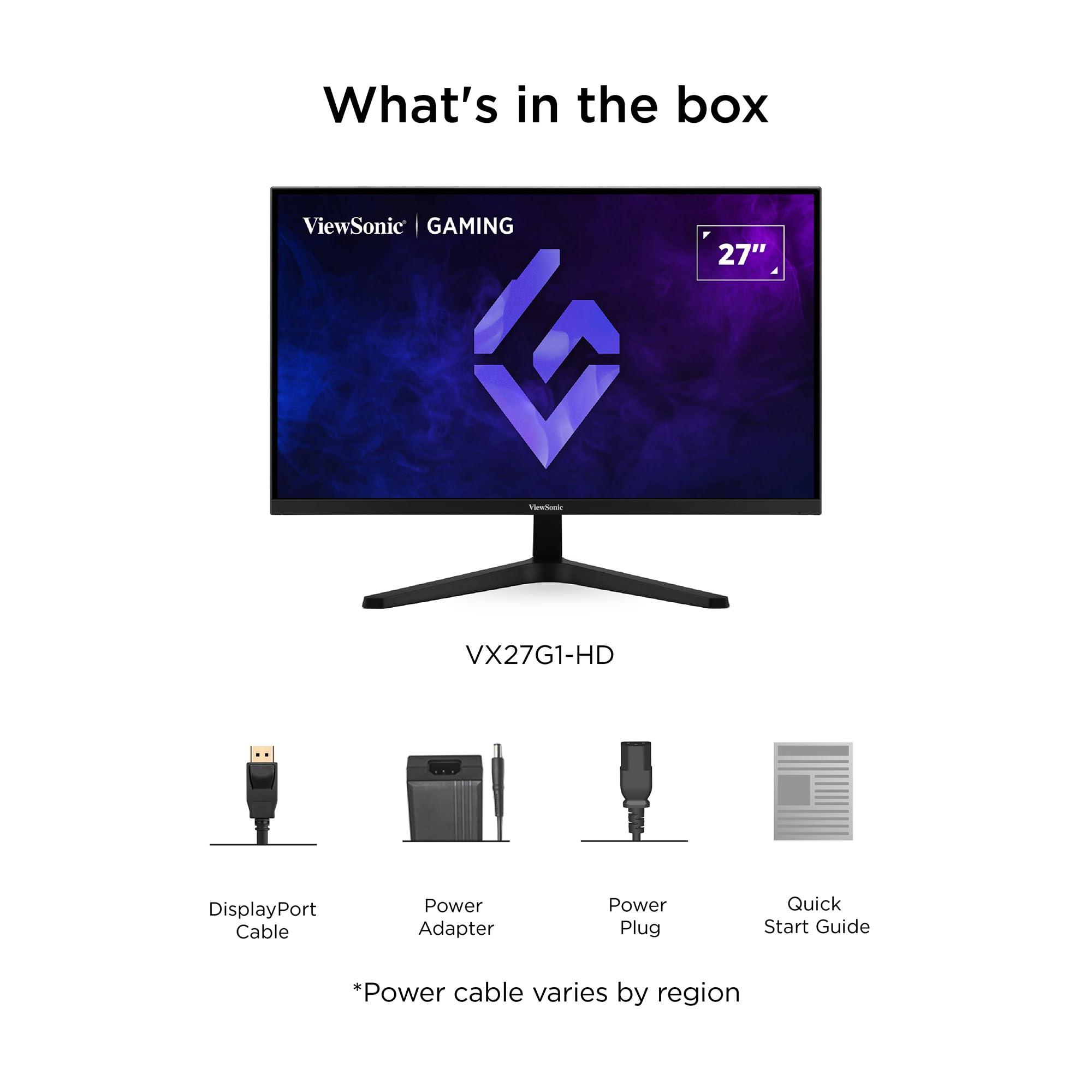 ViewSonic VX27G1-HD Gaming Monitor 180Hz 27 Pollici, Monitor da Gioco, Full HD 1920p x 1080p, 1ms MPRT, IPS Pannello, G-Sync Compatible, HDR10, HDMI 2.0 x2, Display Port
