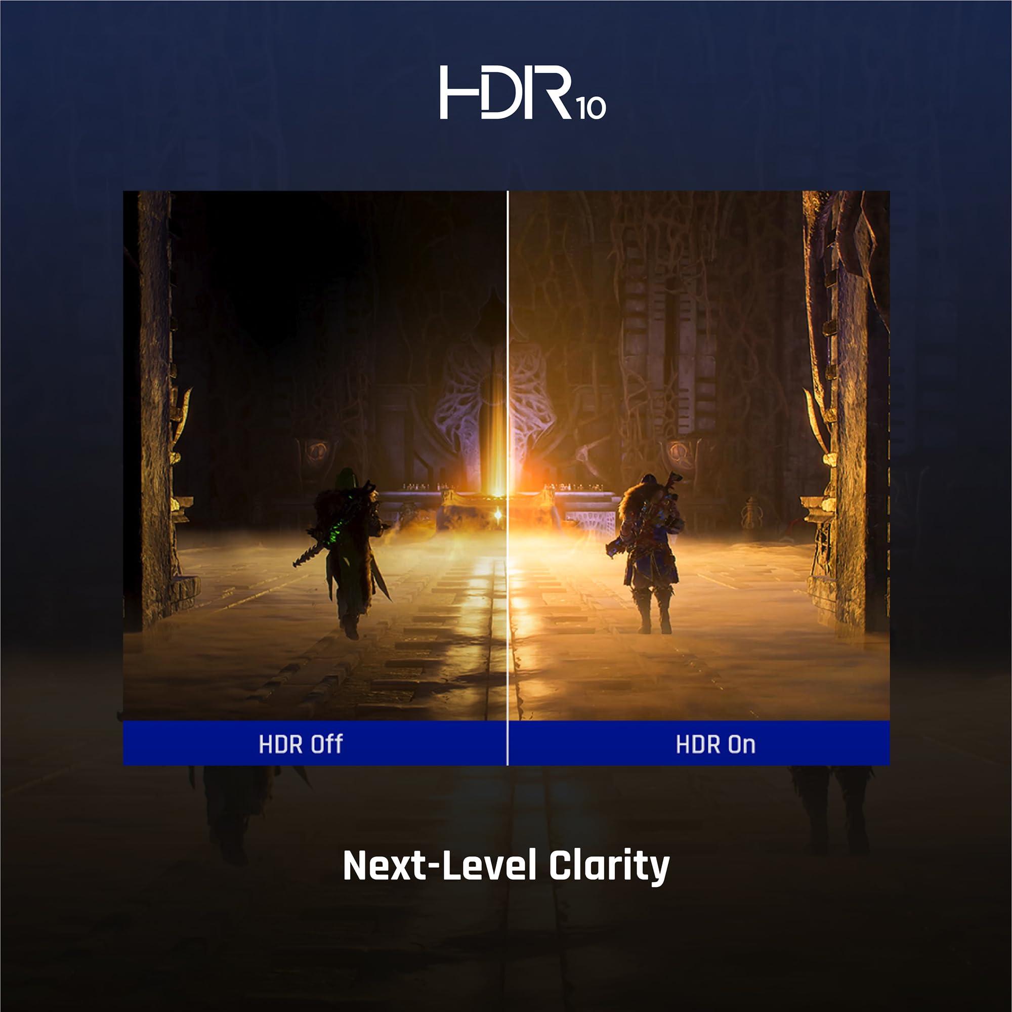 - SCATENA IMMAGINI VIVIDE: L'HDR10 porta la nitidezza dell'immagine a un livello completamente nuovo, offrendo una gamma dinamica migliorata. Esplora mondi ultraterreni, sfoglia le foto delle vacanze o goditi filmati ricchi di azione che prendono vita con un contrasto più profondo, colori più ricchi e dettagli più nitidi.