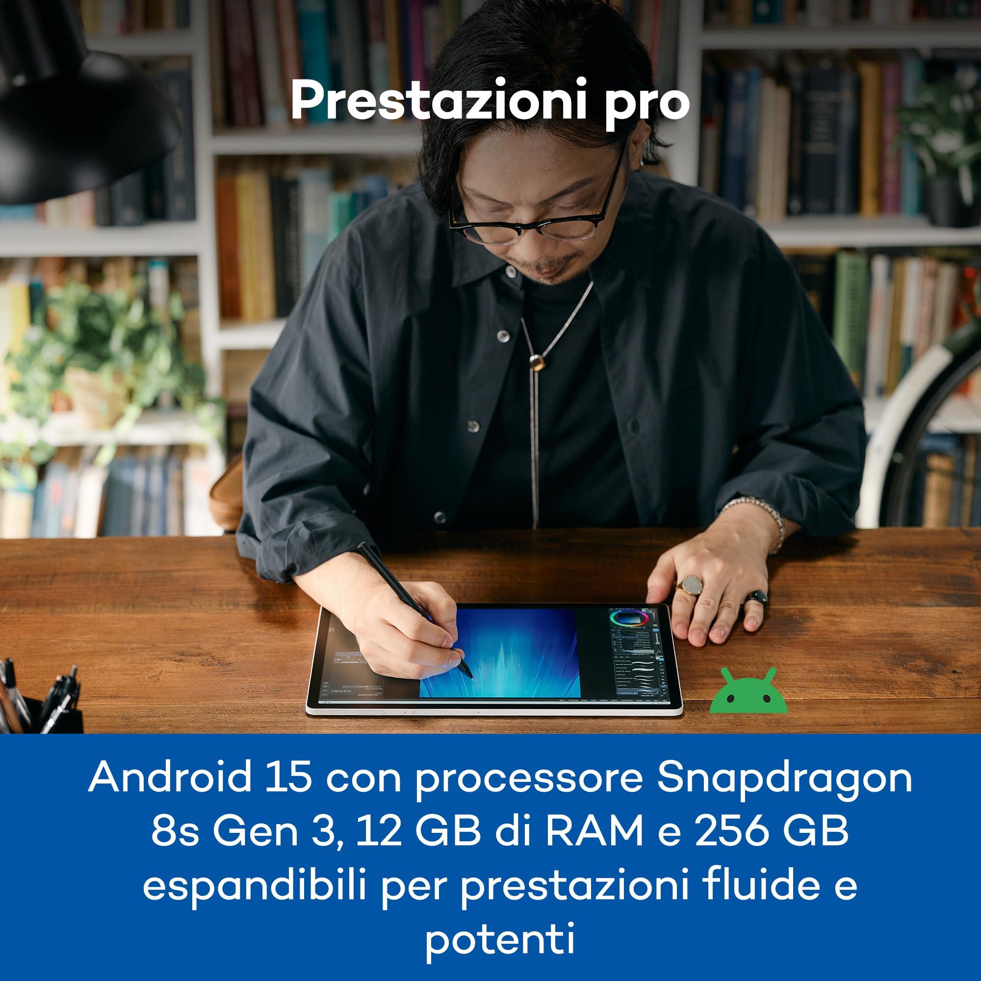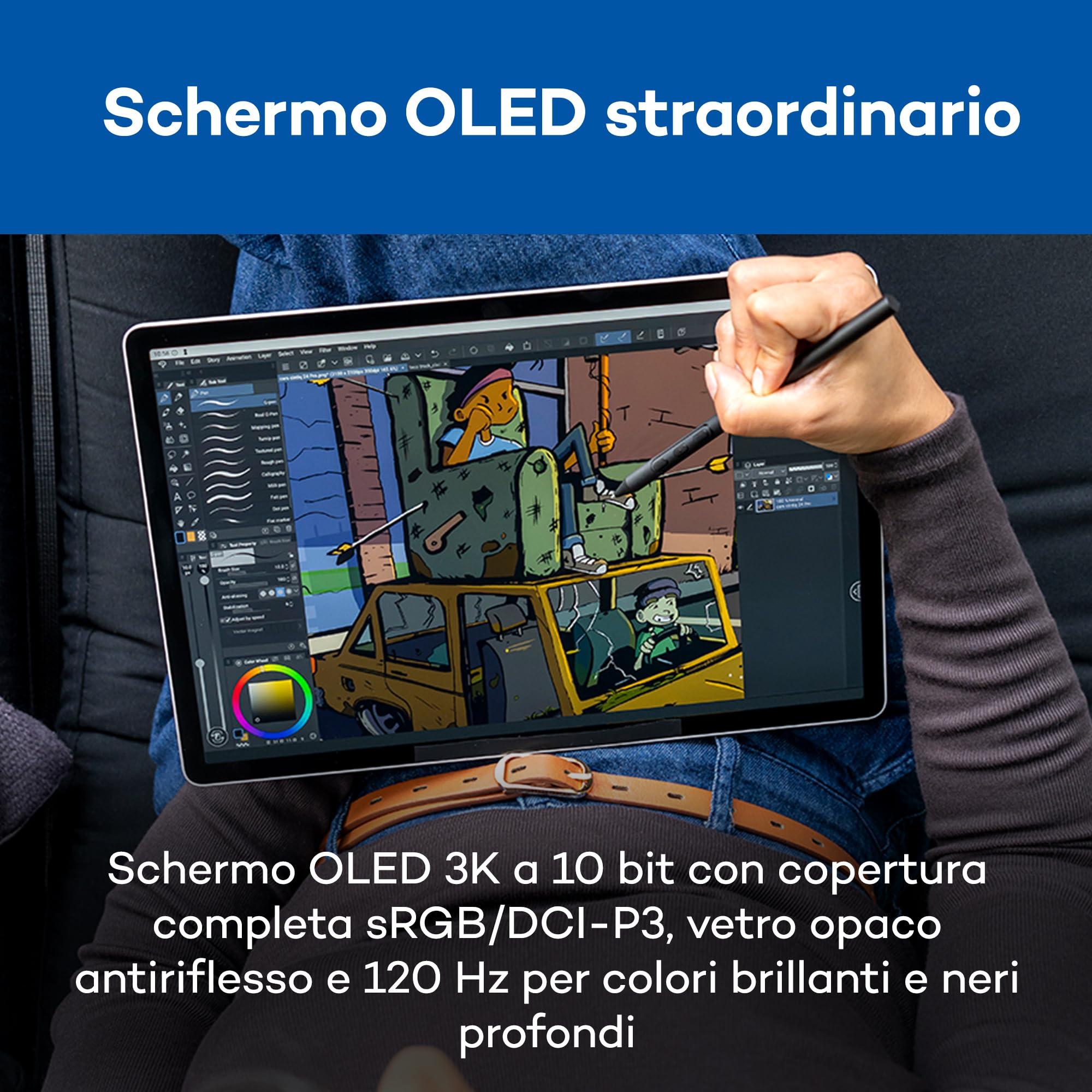 - Tablet creativo autonomo di livello professionale (non richiede PC): Immergiti in un’esperienza creativa eccezionale con un tablet OLED da 14” che offre neri profondi autentici, contrasto eccezionale, risoluzione 3K e ampia gamma di colori (100% DCI-P3). Dotato di Android OS 15 e alimentato dal Snapdragon 8s Gen 3 con 12 GB di RAM e 256 GB di memoria.
