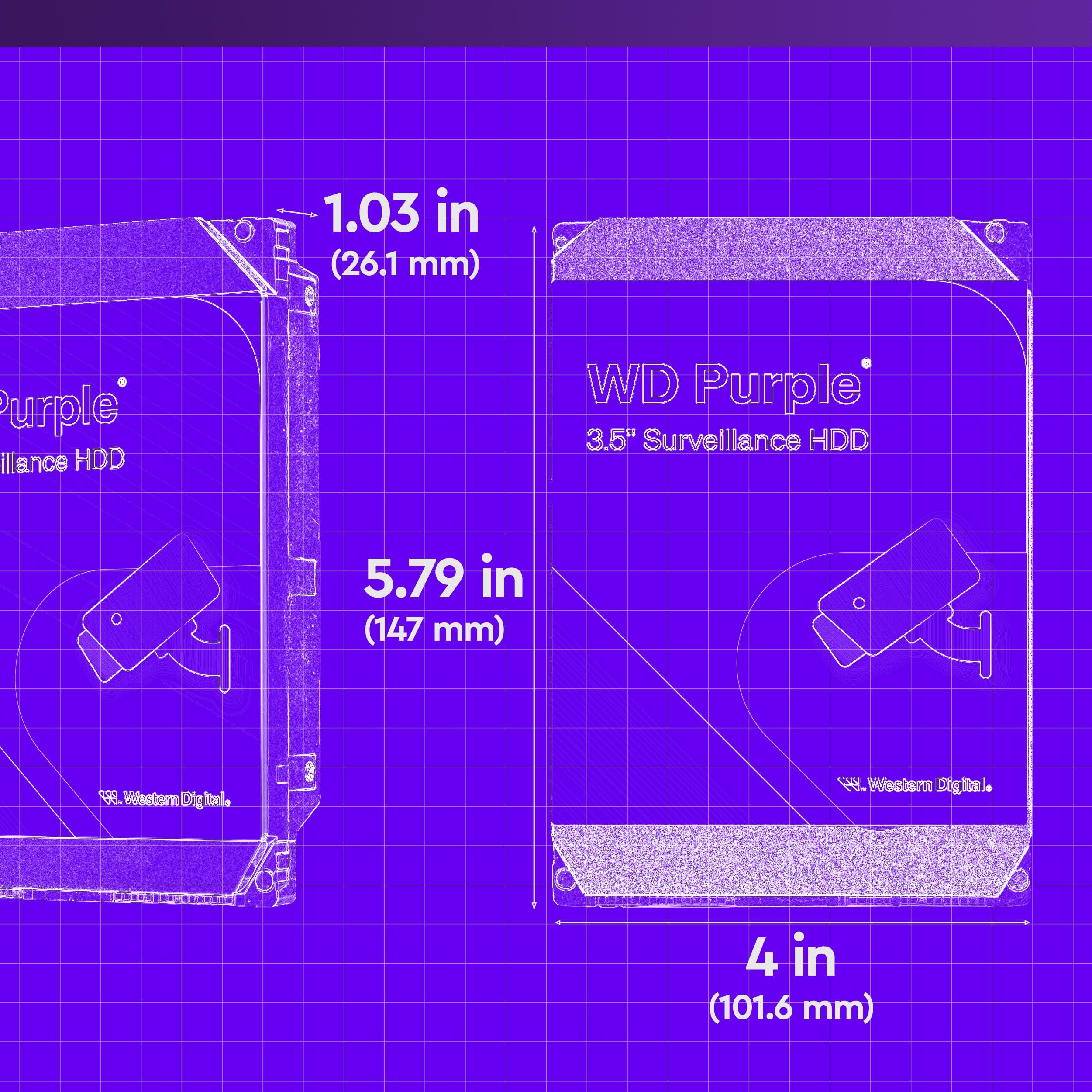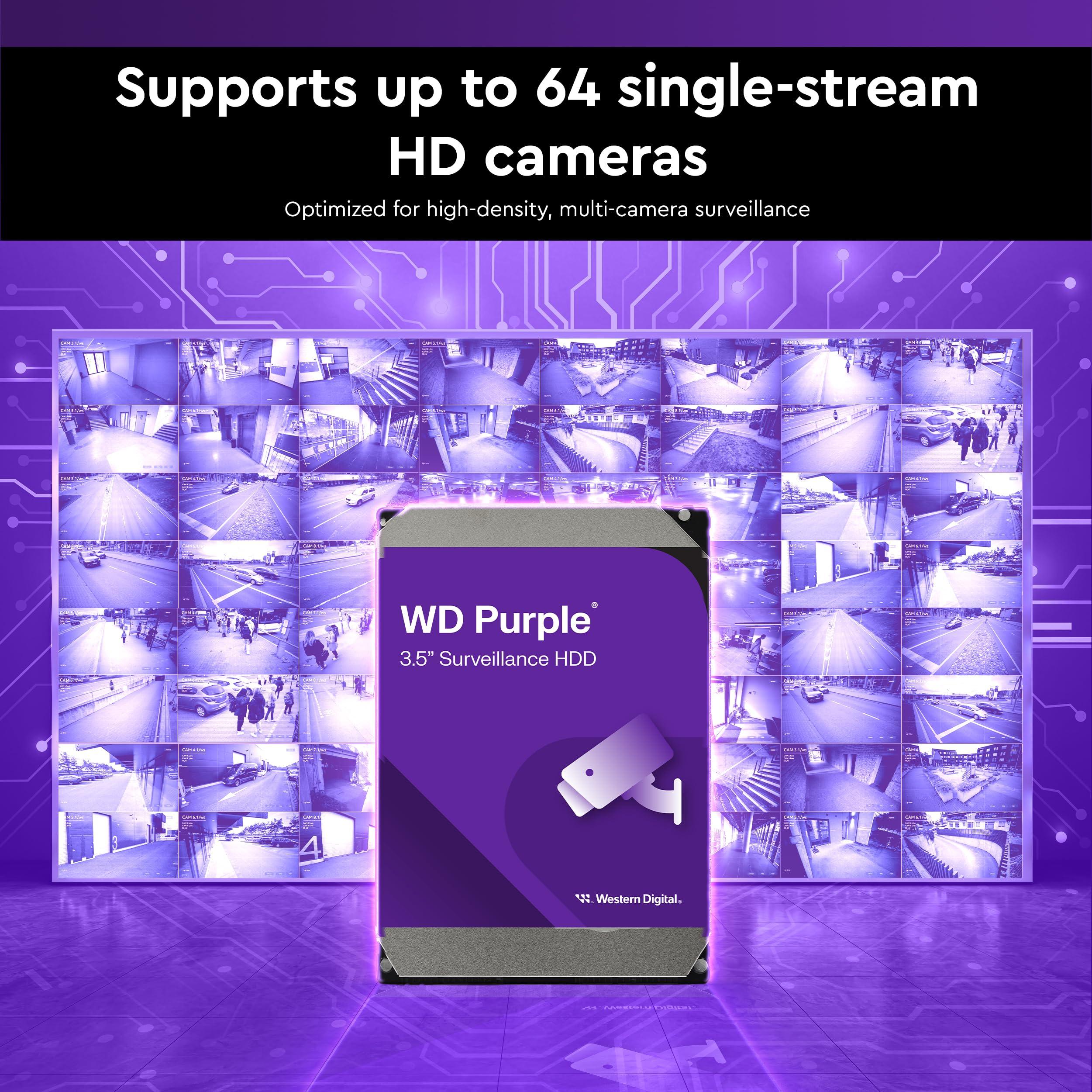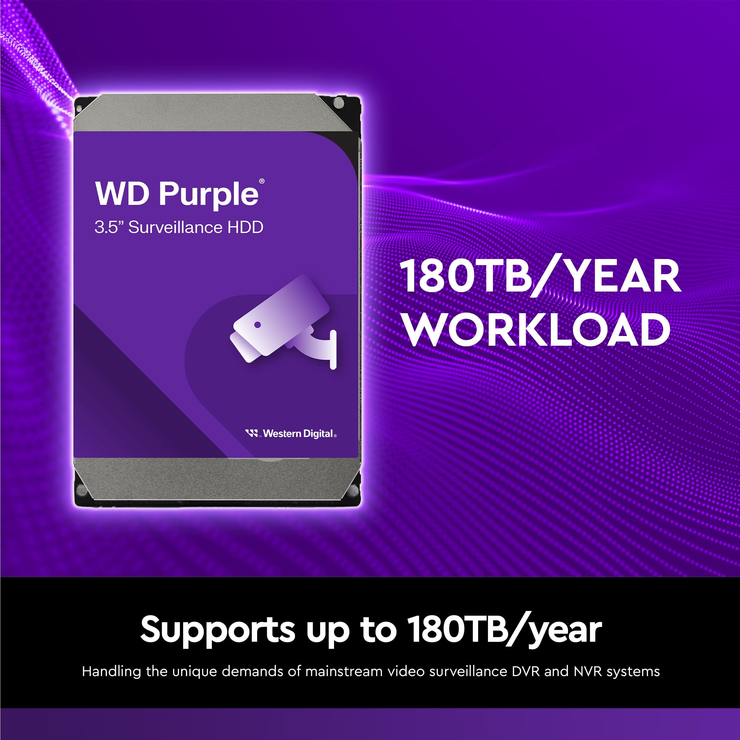 WD Purple 8TB per Videosorveglianza, Hard Disk Interno 3,5” - Tecnologia AllFrame, SATA 6 Gbit/s, 180TB/anno, Cache da 256 MB