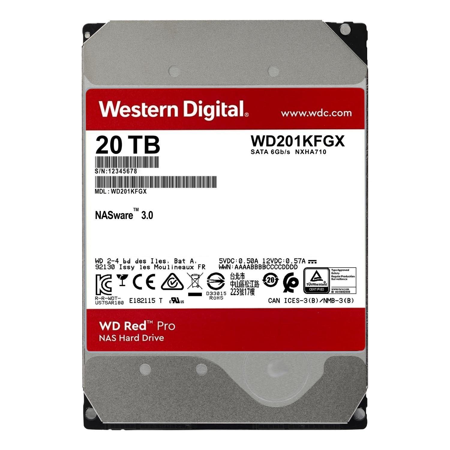 WD Red Pro 20TB NAS Hard Disk Interno 3,5" - 7200 RPM, SATA 6 Gb/s, CMR, Cache da 512MB