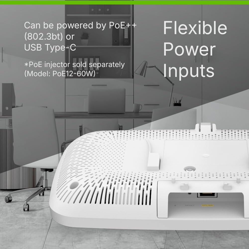 Zyxel BE15000 WLAN Access Point WiFi 7 | 10 GbE Multi-Gig-Uplink | 8 streams, tripla radio, MLO, filtro RF | Alimentazione PoE+ o USB C (non inclusa) | Cloud o standalone [NWA240BE]