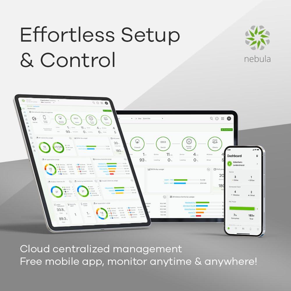 - Gestito dal pluripremiato Nebula Cloud per sprigionare il suo massimo potenziale, che include l'ottimizzazione del WiFi in tempo reale e una maggiore protezione della cybersecurity per le moderne reti di lavoro.