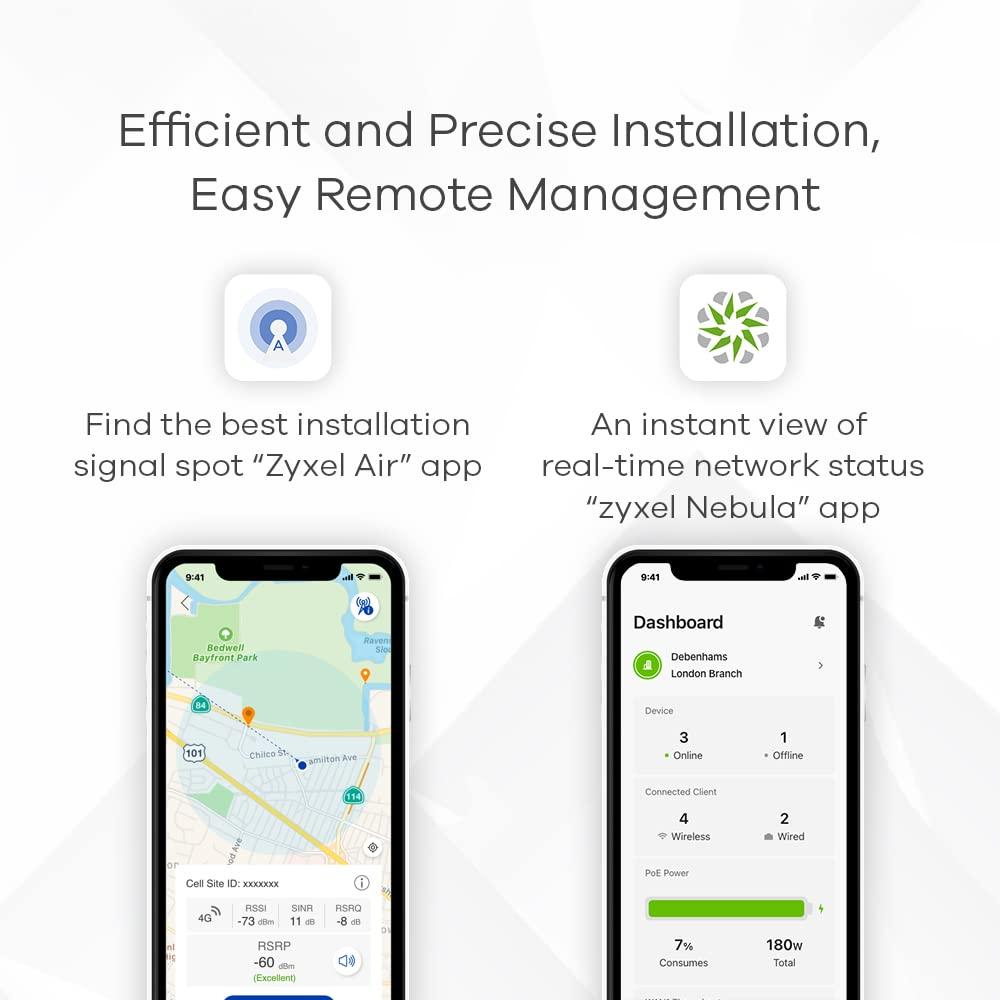 - APP ZYXEL AIR GRATUITA: Identifica facilmente la posizione ottimale per il miglior segnale 5G, gestione locale o remota tramite app Nebula Cloud, senza competenze IT necessarie