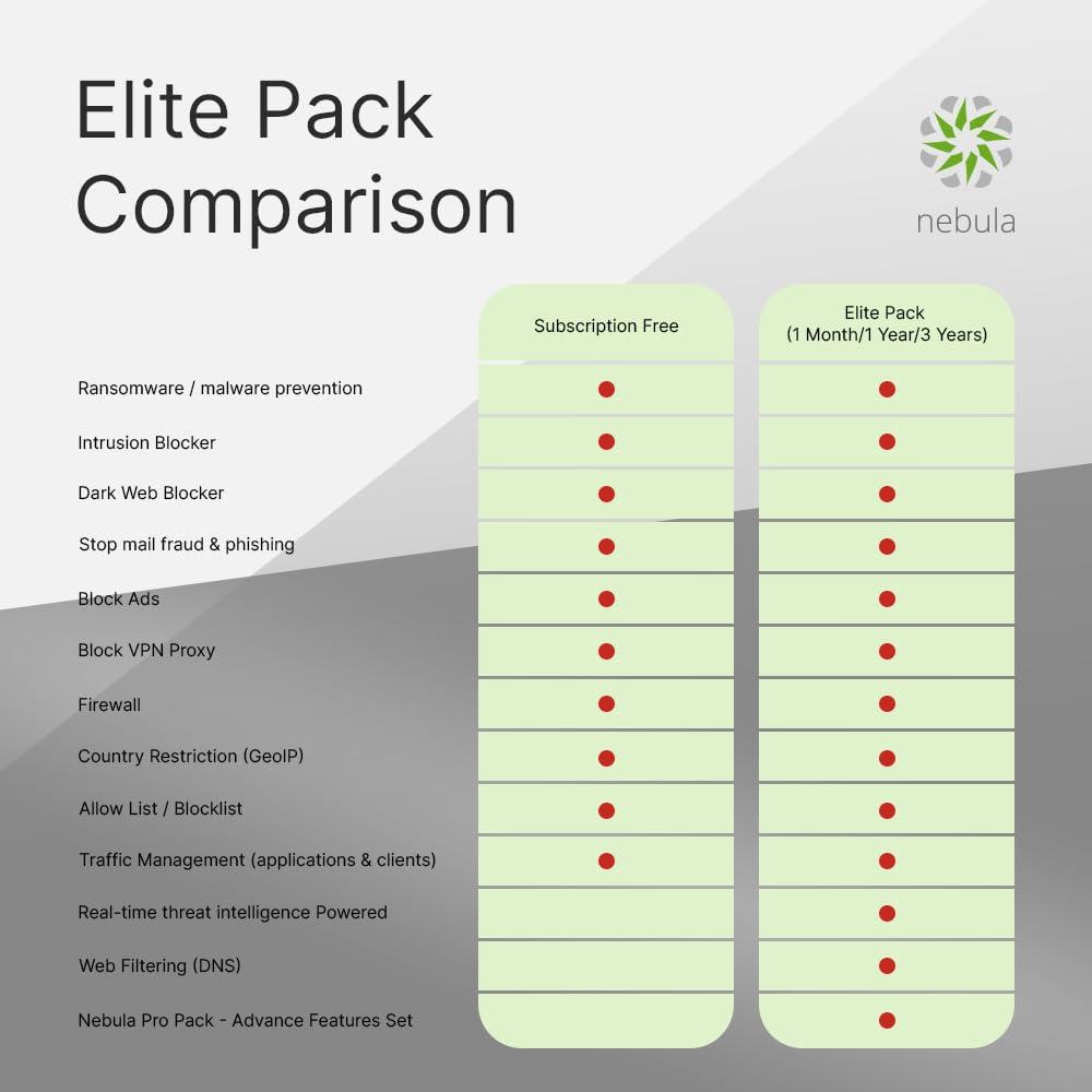 - CON PACCHETTO ELITE DI 1 ANNO INCLUSO – I nuovi dispositivi registrati a partire dal 19 gennaio 2026 riceveranno gratuitamente per 12 mesi un filtro web completo, le funzionalità avanzate di Nebula Pro e una protezione ransomware potenziata. I dispositivi registrati in precedenza non sono idonei