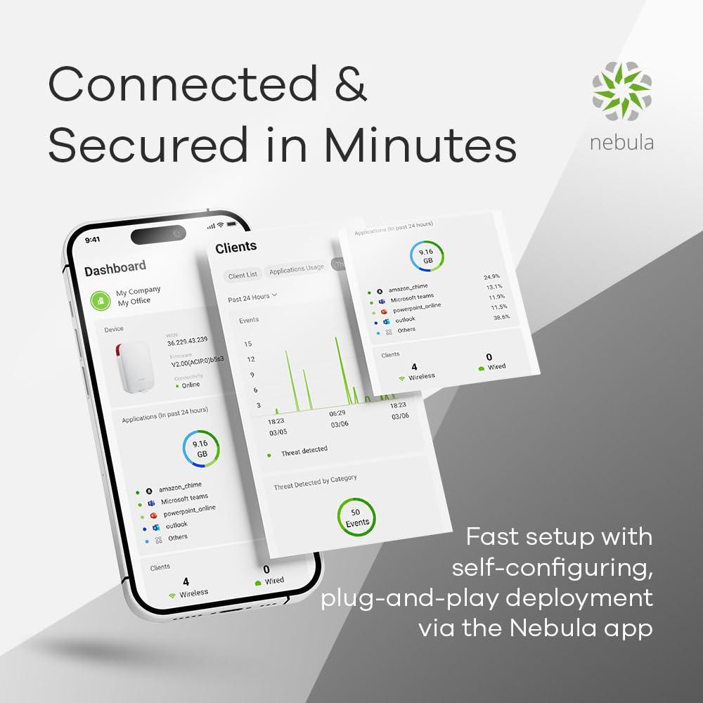 - GESTIONE CLOUD SEMPLIFICATA – Configurazione in pochi minuti tramite l'app mobile Nebula e gestione dell'intera rete da un'unica piattaforma cloud centralizzata senza controller hardware o software aggiuntivi