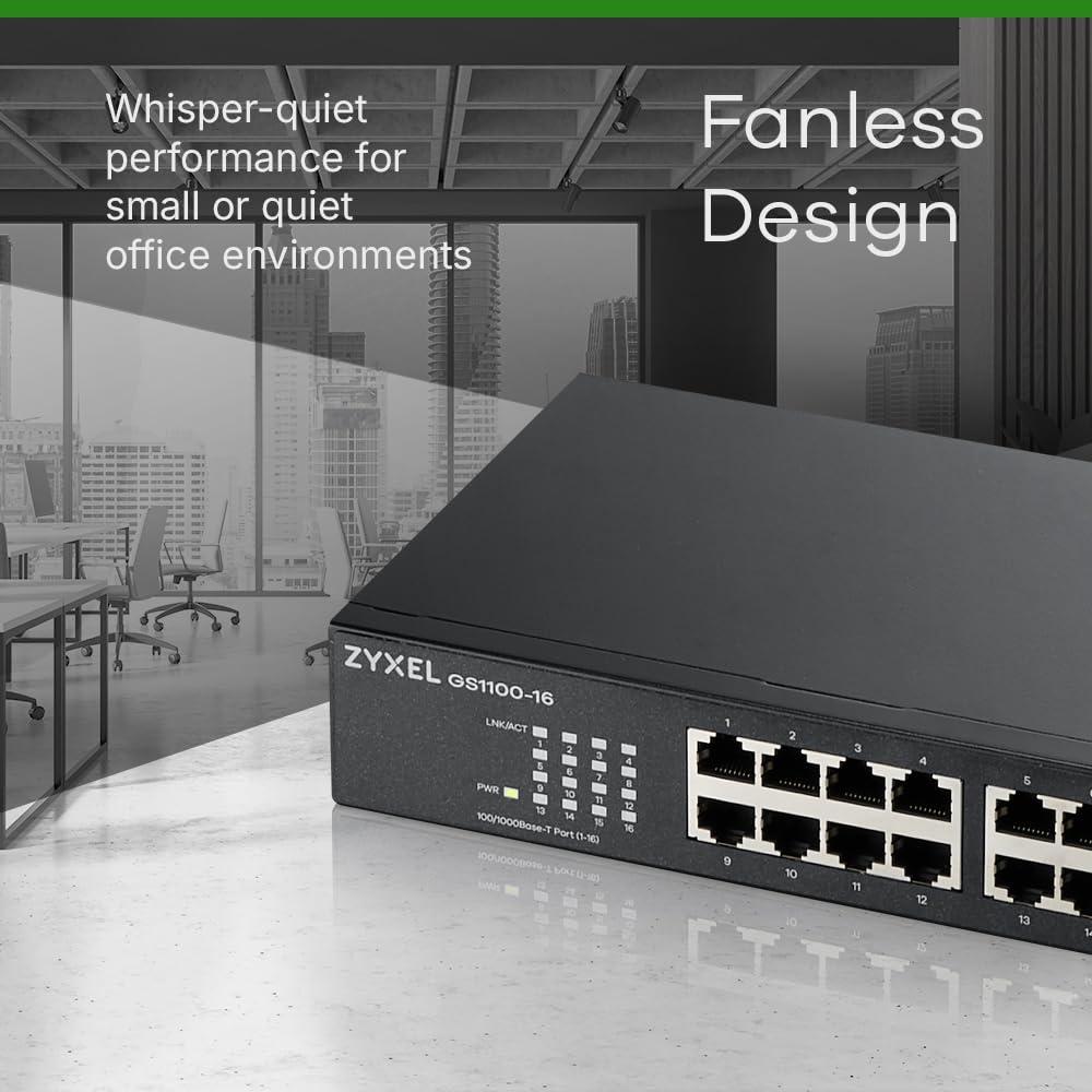 Zyxel Switch Unmanaged, 16 porte Gigabit, Design senza ventole [GS1100-16 v3]