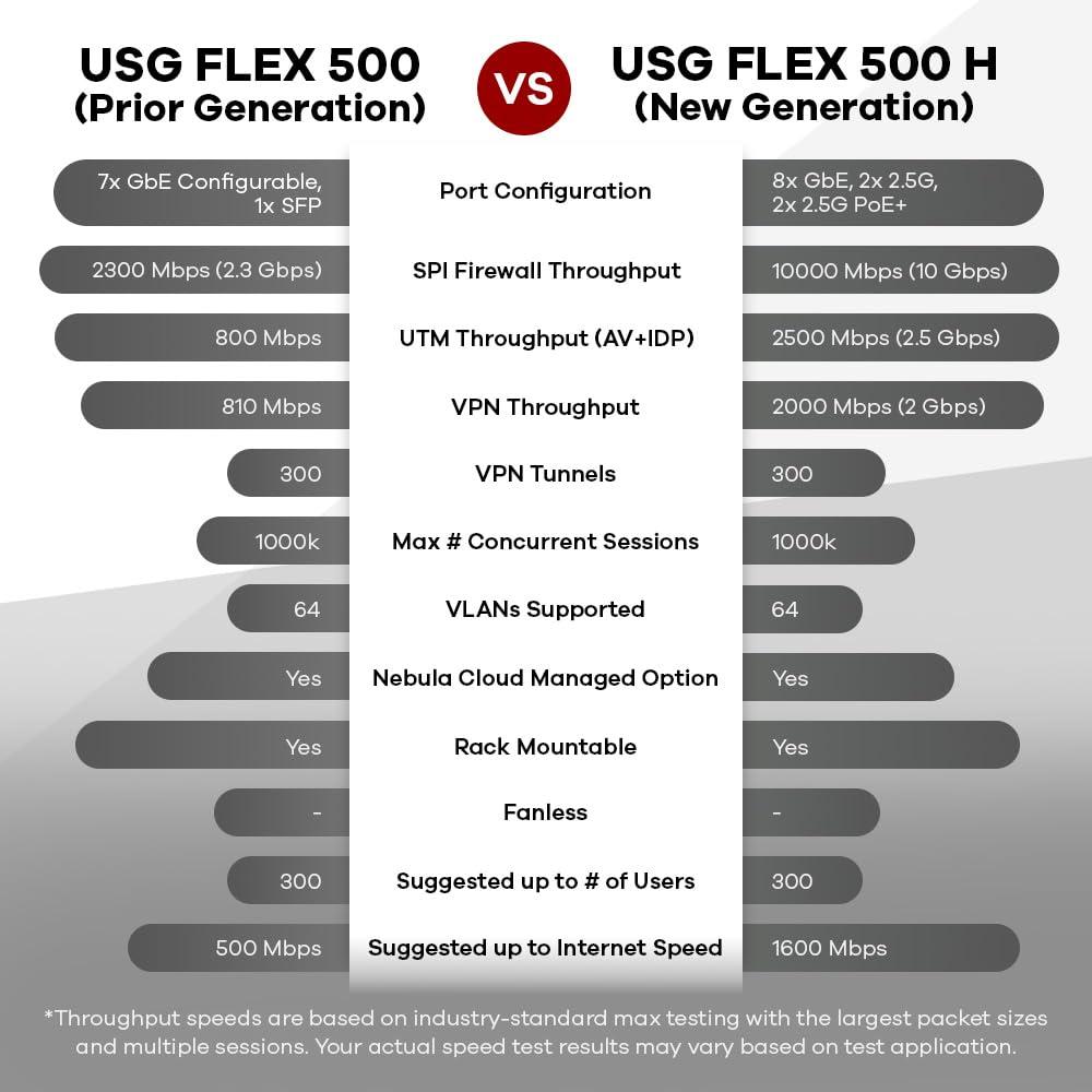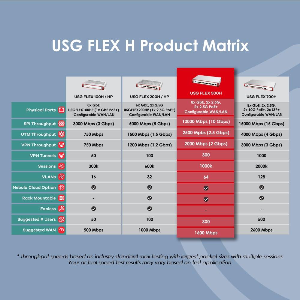 Zyxel USGFLEX500H ZyWALL Firewall di Sicurezza Informatica ad Alta Velocità | Pacchetto UTM di 1 Anno | 4x Multi-Gig 2.5G (2x PoE+) | VPN | Business Class | Fino a 300 Utenti | Nebula Cloud