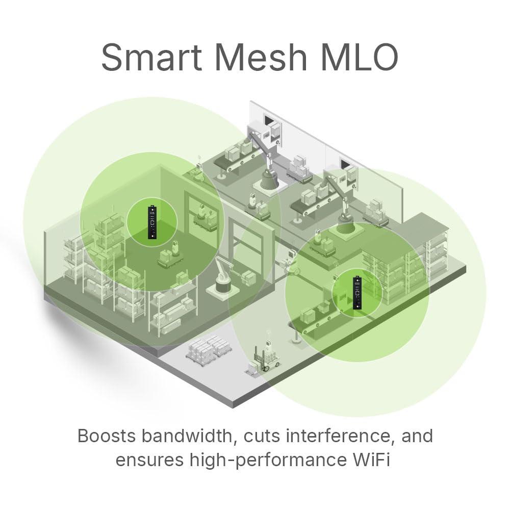 - Il WiFi 7 dual-radio con 2x2 MU-MIMO offre prestazioni senza interruzioni e con latenza ultra bassa fino a 4324 Mbps (5 GHz) e 688 Mbps (2,4 GHz) per l'Industria 4.0