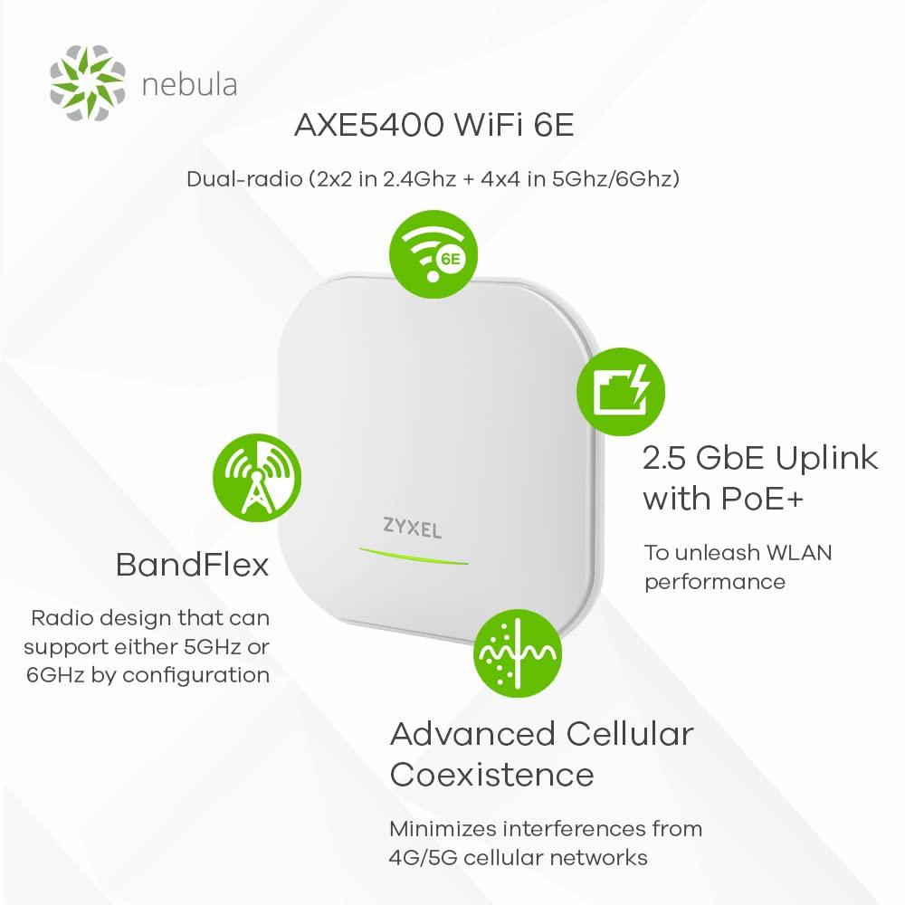 Zyxel WiFi6E (802.11axe) AXE5400 Punto di accesso a doppia radio | Radio BandFlex che supporta 6 GHz/5 GHz per configurazione | Lungo raggio esteso [NWA220AX-6E]