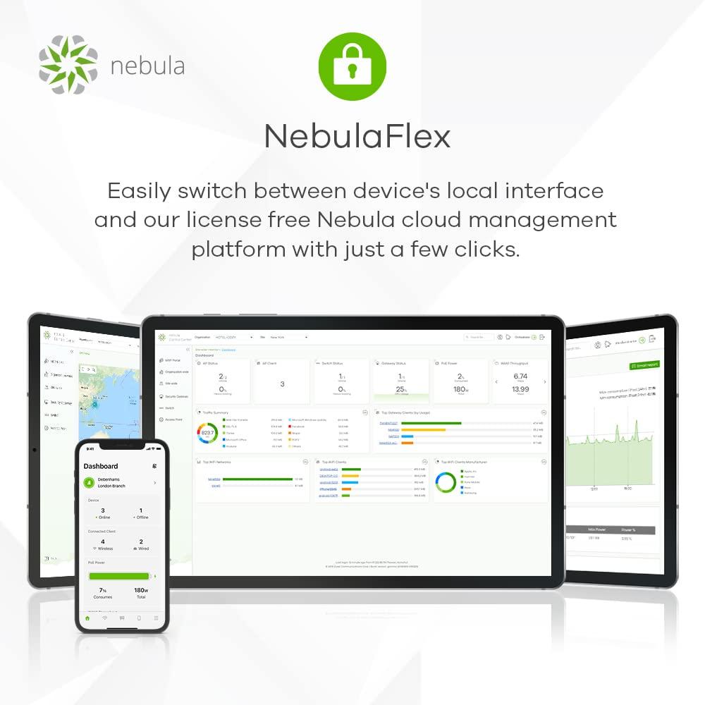 - Gestione flessibile, che consente agli utenti di passare dalla modalità gestita da Cloud Nebula all'interfaccia web locale del dispositivo