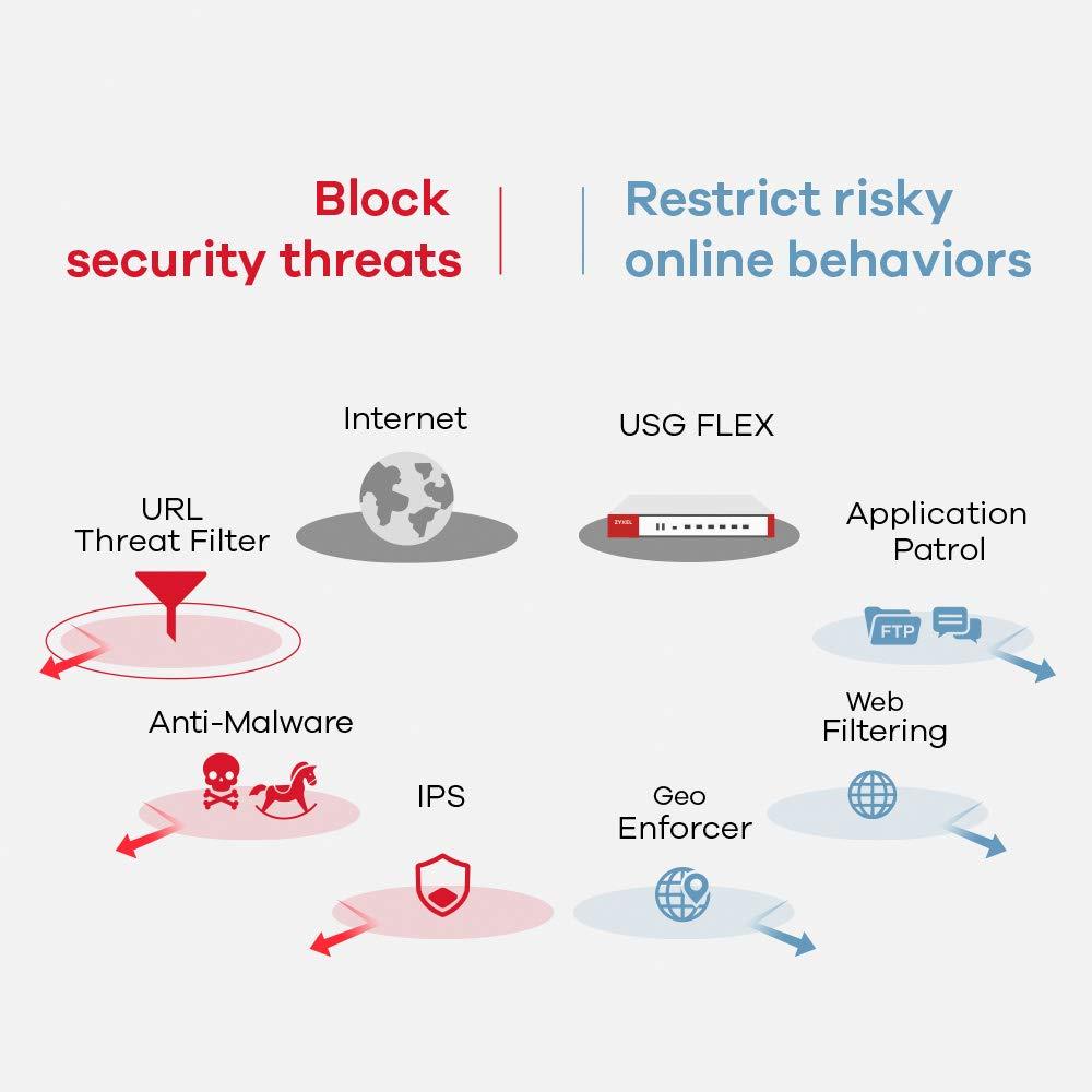 - Integrato con Zyxel Security Cloud con informazioni in scala su file e dati sulle minacce in tempo reale